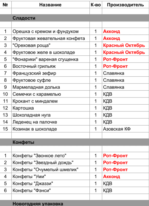 1. Проверить, можно ли внести изменения в состав подарка. Если нет, то скорее всего наборы были собраны еще летом из конфет, произведенных еще раньше
