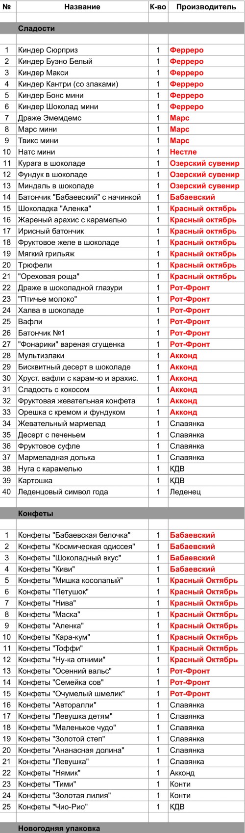 1. Проверить, можно ли внести изменения в состав подарка. Если нет, то скорее всего наборы были собраны еще летом из конфет, произведенных еще раньше
