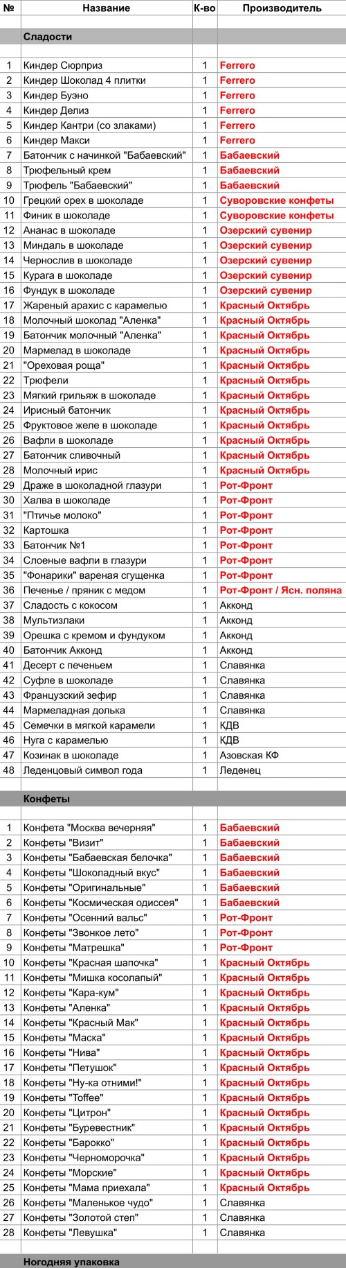 1. Проверить, можно ли внести изменения в состав подарка. Если нет, то скорее всего наборы были собраны еще летом из конфет, произведенных еще раньше